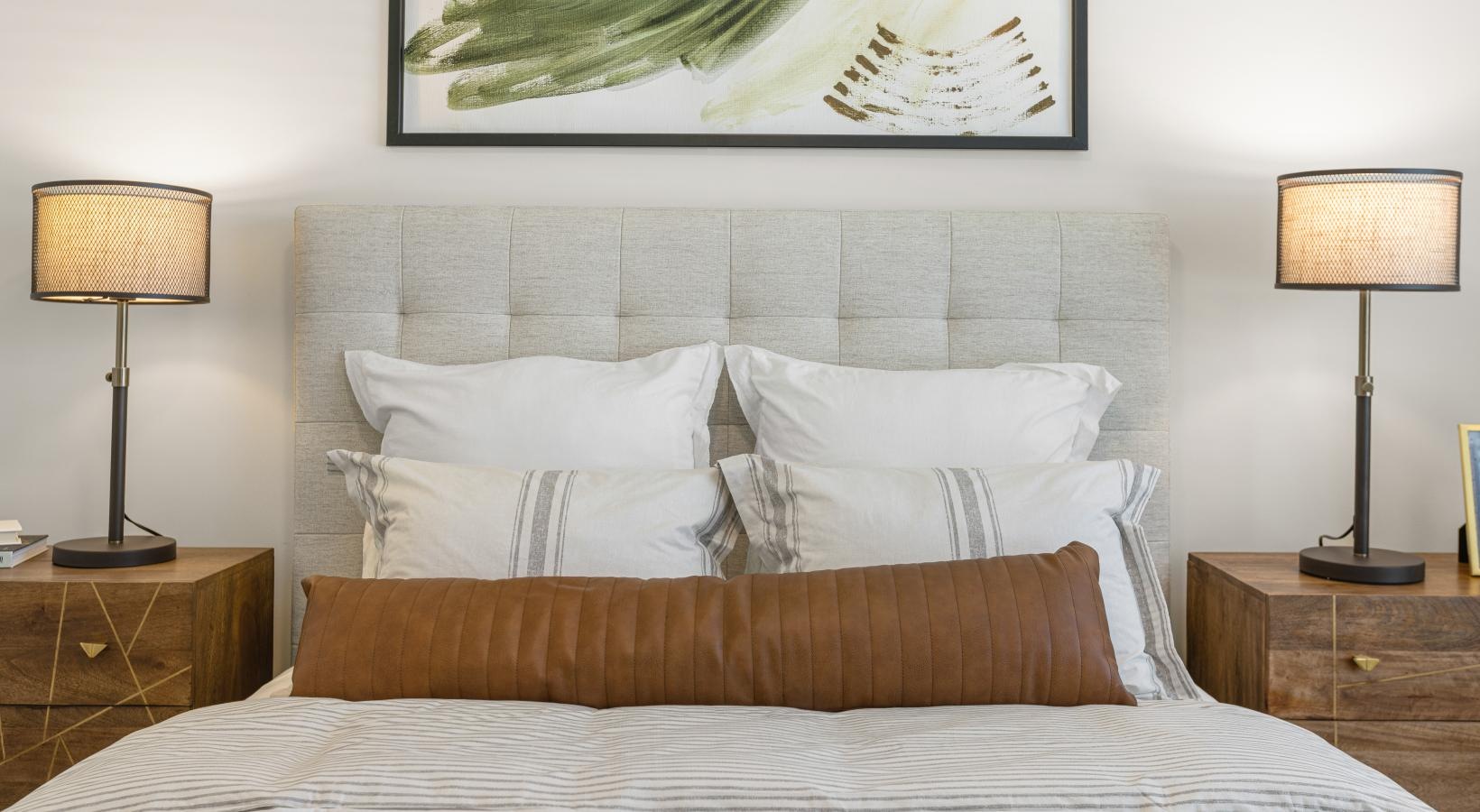 • a bed with white pillows